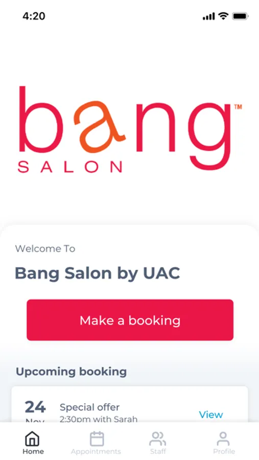 The Bang Salon by UAC app makes booking your appointments and managing your loyalty points even easier. You're just a few taps away from feeling good and looking great!