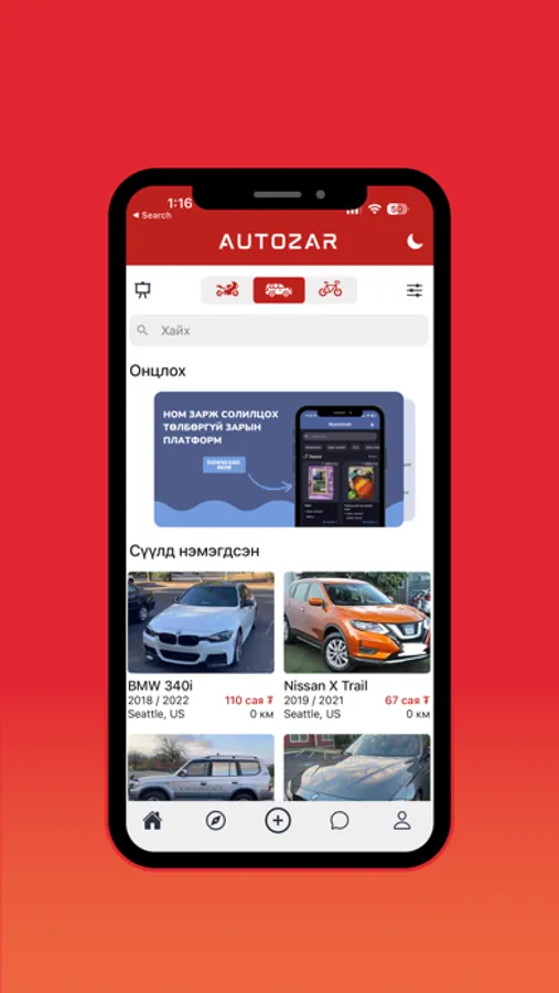 АвтоЗар нь машин, мотоцикл, дугуйны нэгтгэсэн зарын платформ юм.