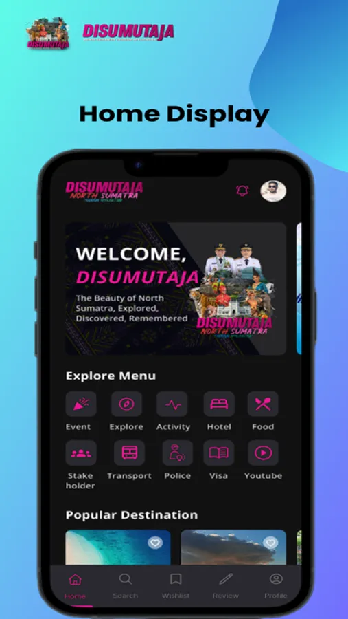 Find interesting tourist destinations, the best lodging, a variety of delicious culinary delights, exciting North Sumatran events with the DISUMUTAJA application.