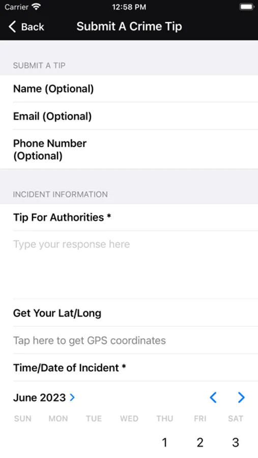This app is not intended to be used to report emergency situations. Please call 911 in an emergency.