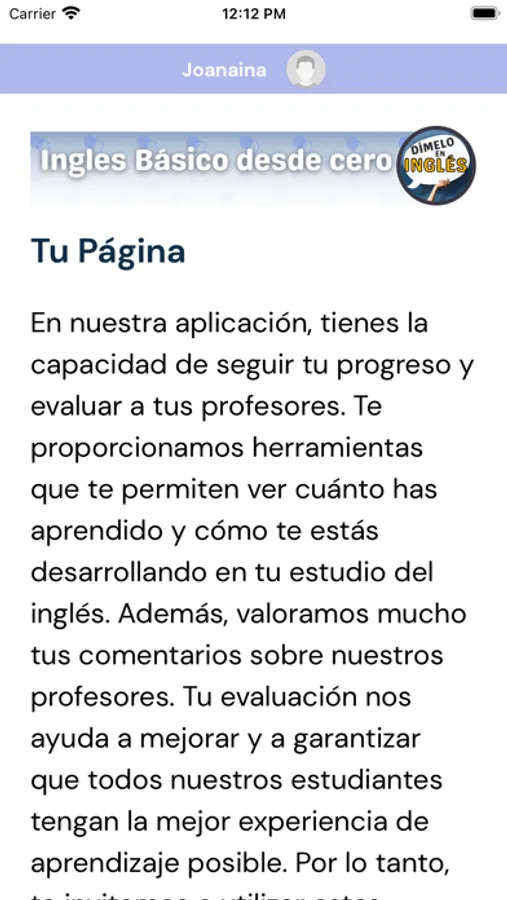 Through our exclusive application for students and teachers, we provide an interactive space for learning, progress monitoring and continuous feedback. With Dímelo en Inglés, you are taking an important step toward achieving your English language goals, and we are excited to be a part of your journey.