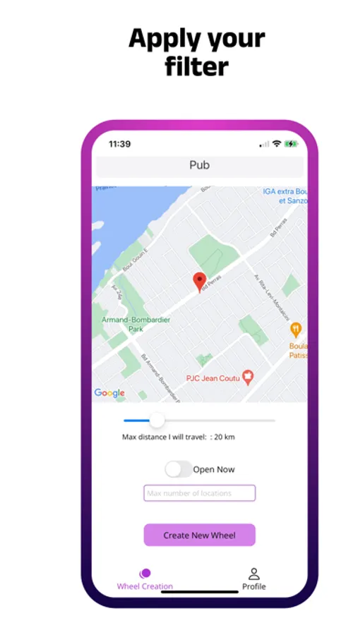 The age-old question of what we should do and where we should go has stopped many from creating memorable moments with their loved ones. Pick A Place Int, allows you to find a place anywhere across the world depending on what you want to do and where you want to go. It has eight preselected categories: Entertainment, Brain Stimulants, Family Activities, Extreme Sports, Nature, Relaxation, Restaurants and Sports. Each of these categories has its own set of subcategories which allow you to be more specific in what will be chosen. If one of the preselected categories does not have what you want to do, do not worry you can easily create your own by typing it in. If you have specific locations in mind and are not sure which to choose you can enter them with our autofill and it will find a place for you. We will find a place based on your needs. We have filters set for your location, how far you want to go, if the location is open and for certain categories the price. Once all of that is applied, we have a very fun wheel which allows you to visibly see your chosen place being selected at random. Once it is chosen we will provide you with the website, directions and phone number if they are available which will allow you to easily get information for the place.