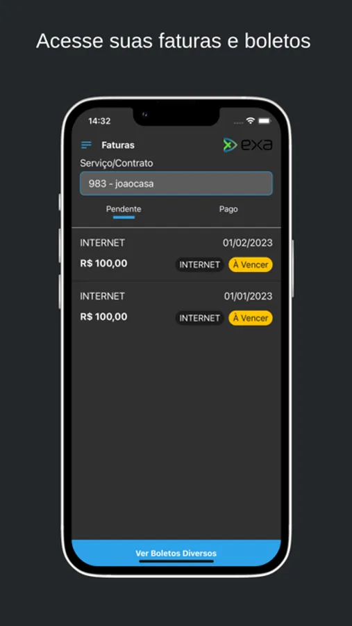 Acesse o Aplicativo da Exa Internet e tenha acesso a suas mensalidades, desbloqueio de confiança e muito mais!
