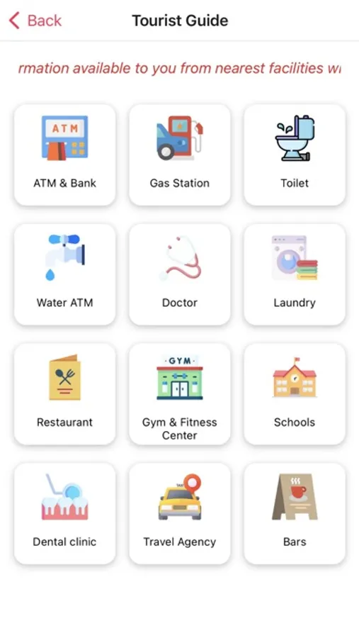 -Essential Services Locator: Easily find police stations, medical centers, accommodations, and transport options.