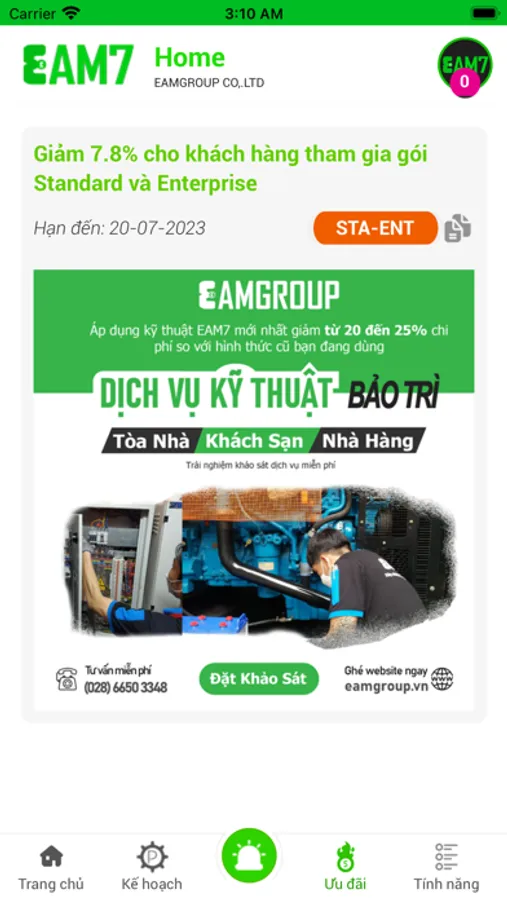 EAMGROUP understands the business’s worries, so we have developed EAM7 – An application to help manage all technical problems, repair information, quotations, and bills of incidents that occurred in the building. When you become an EAMGROUP customer, you will be provided an EAM7 account with features of managing, checking, retrieving repair information, reporting emergency incidents,...to assist with operating hotels, restaurants, and buildings,... in the most optimal and effective way.