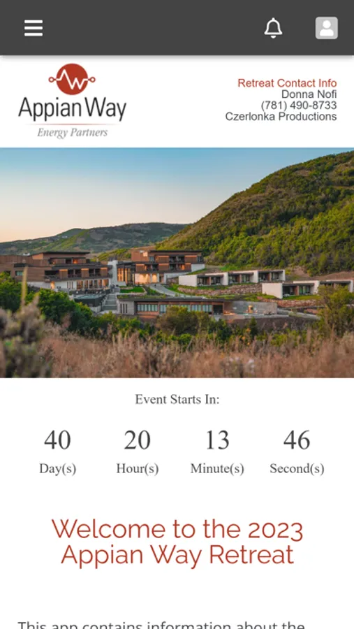 Welcome to the 2023 Appian Way Retreat held at the Lodge at Blue Sky in Utah! This official app is your go-to source to keep you informed during your stay. Includes a personal retreat agenda, event details, resort maps, and photo sharing. Be sure to enable push notifications on your mobile device to receive important updates on schedules, weather, and more.