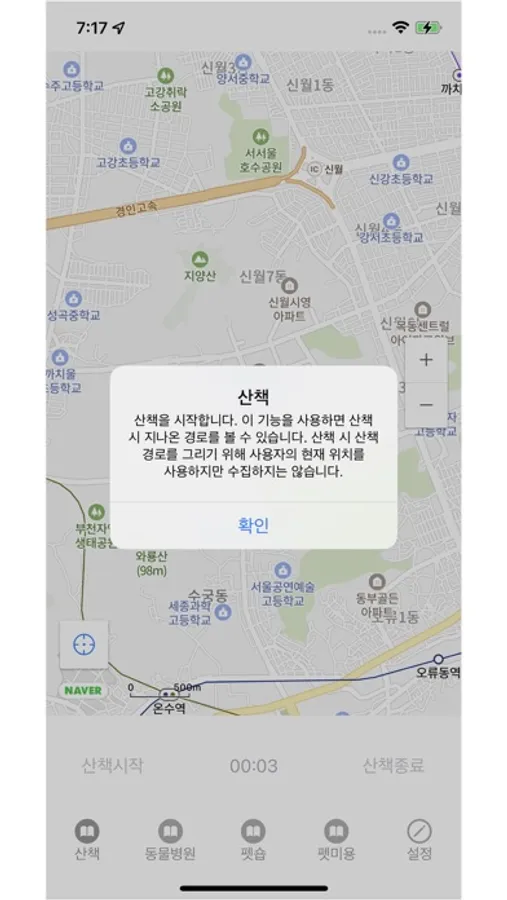 - 반려 동물과 함께하는 산책 기능, 산책 경로 표시 기능