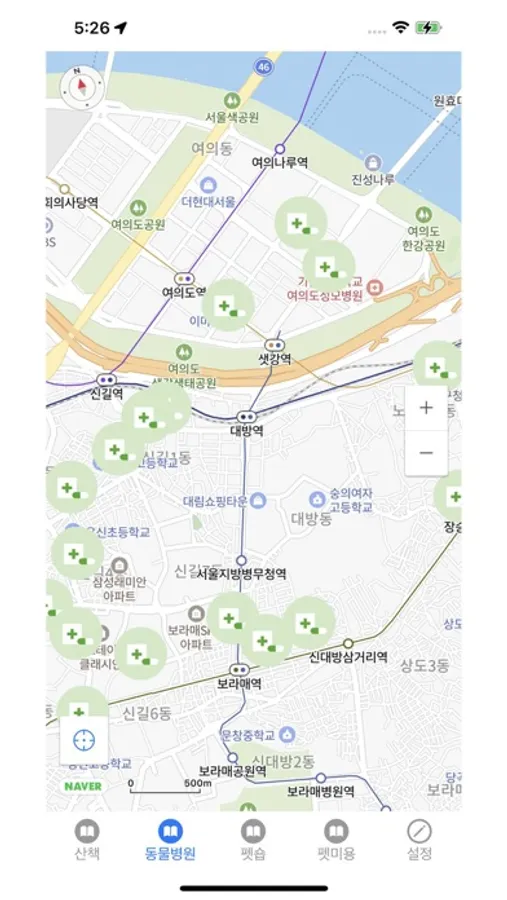 - 반려 동물 병원 위치 정보를 지도에 제공