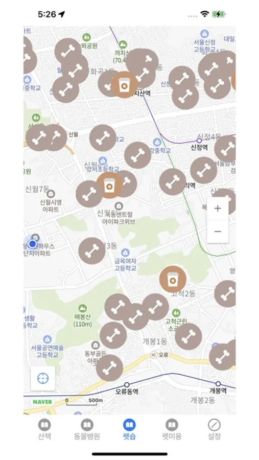- 반려 동물 카페 위치 정보를 지도에 제공
