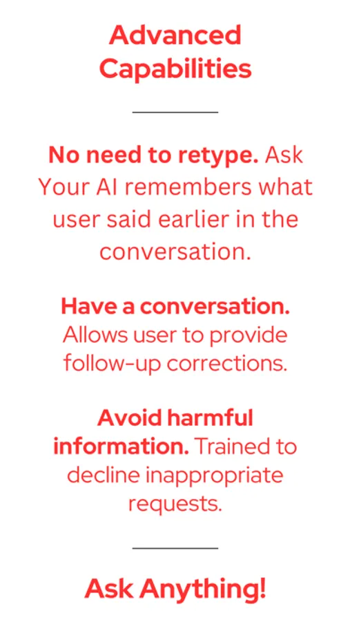 - Engaging Conversations: Ask Your AI serves as your newest conversational companion, ready to chat with you anytime, anywhere. Engage in lively discussions and receive responses that are informative, fun, and remarkably human-like.