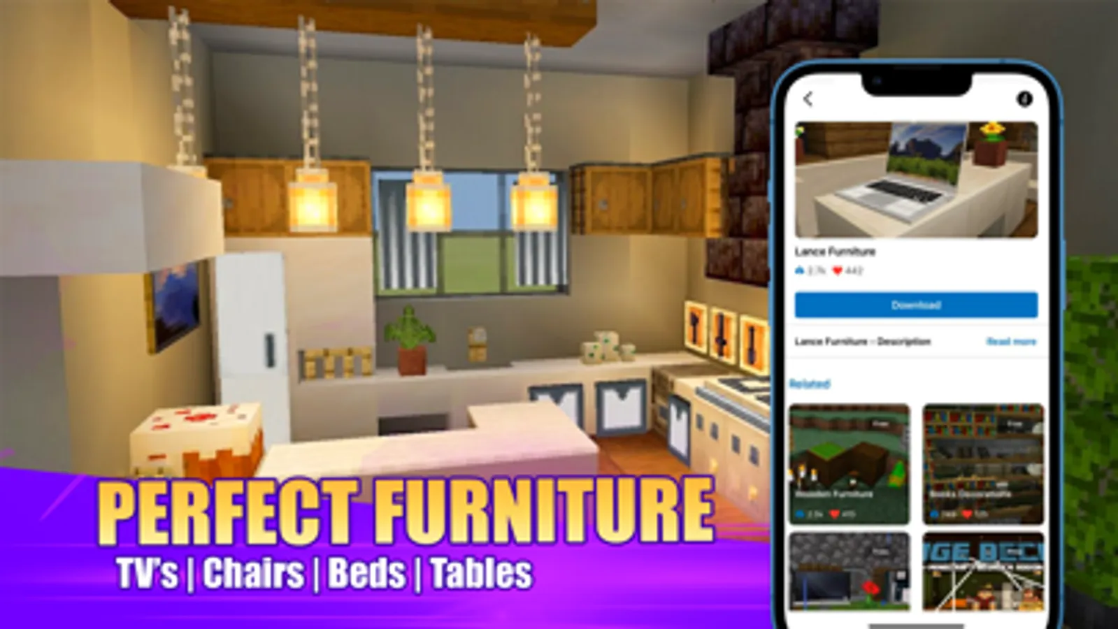 Our Furniture Addons are best selected from most popular Furniture Mod you can find such as Custom Blocks Furniture, Mine-Furniture, Retro Furniture, FURNICRAFT 3D, Furniture with Working Security Cameras, Modern Furniture Addon and much more!