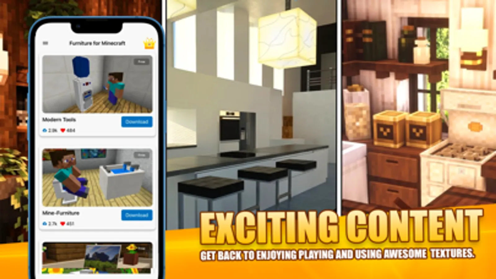 All furniture mod for minecraft in the app are completely free. We have selected the best furniture mod for minecraft PE that really works, a huge number of combinations. To download furniture mod for minecraft, you need to click on the desired craft furniture and click the download button. After that, the furniture mod will be loaded into your furniture mod packs application for modded minecraft directly into the game.