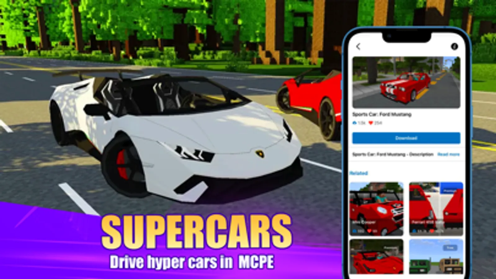 • Drive super cars around the minecraft world 2023