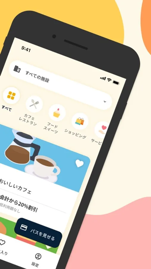 アプリのパス画面を店舗でご提示いただくと、アプリに掲載の店舗ごとの優待を受けることができます。 お気に入り登録機能、施設ごとに店舗を絞り込む機能などもご活用ください。