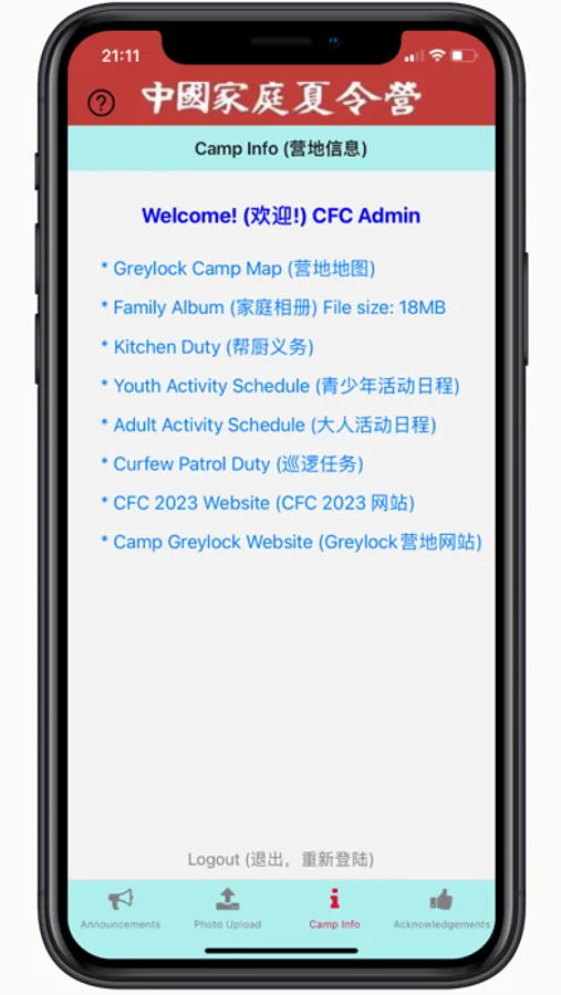 CFC Camp 2023. This app is for campers to communicate and have fun.