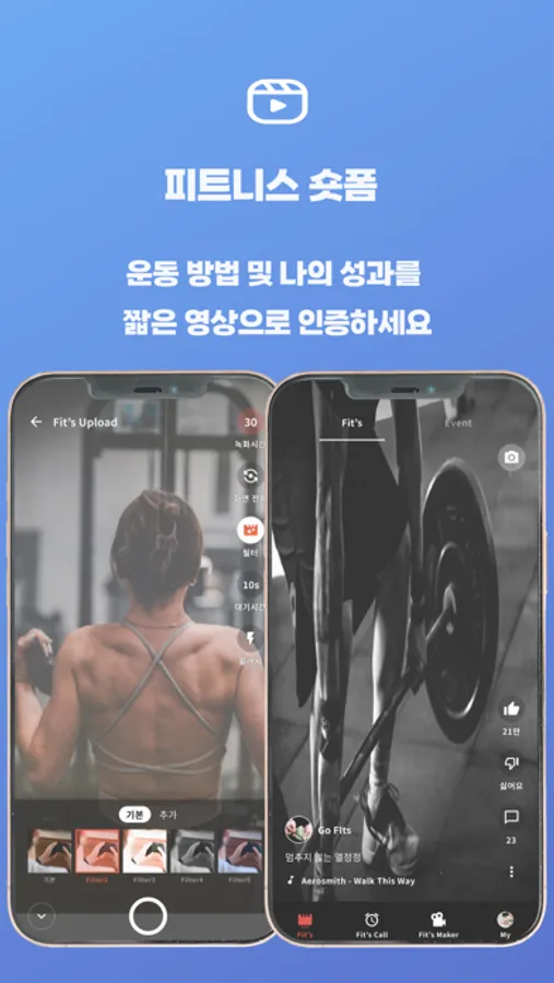 - 피트니스 전문 숏폼(15초~120초의 짧은 영상)의 촬영, 제작 및 공유