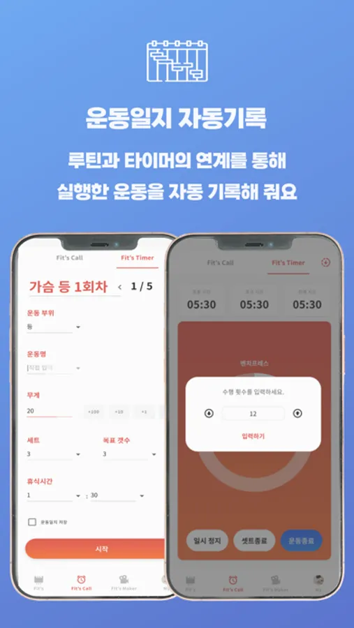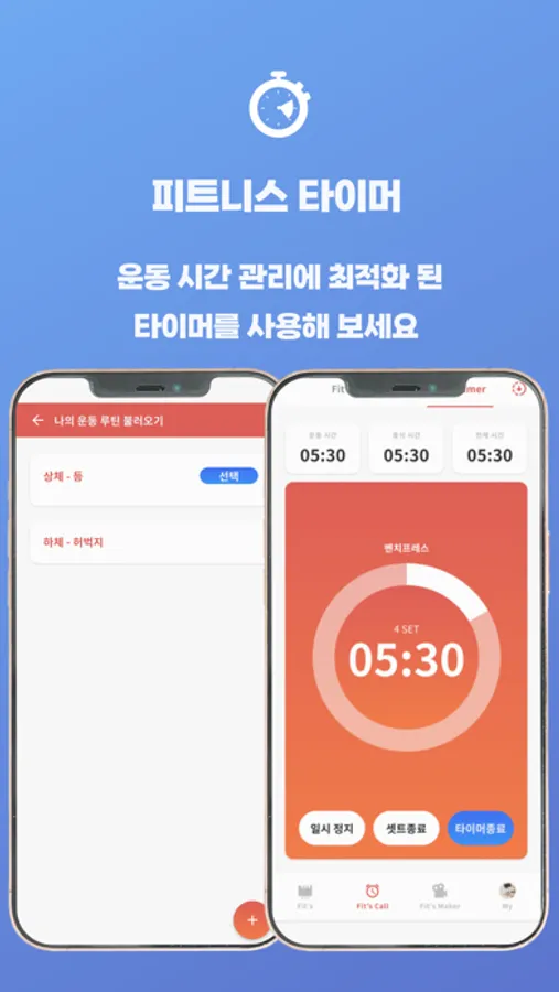 - 운동일지 및 운동계획과 연동 된 피트니스 타이머