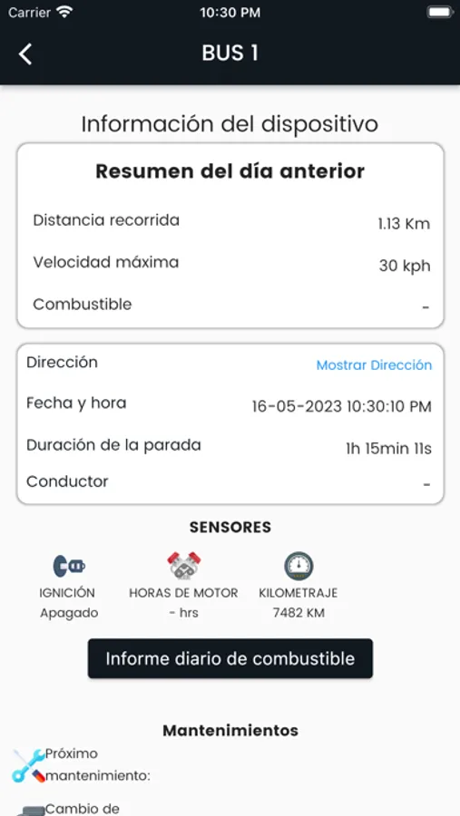 Conozca la posición de sus flotas durante las 24hs y genere información estratégica desde su dispositivo iOS.