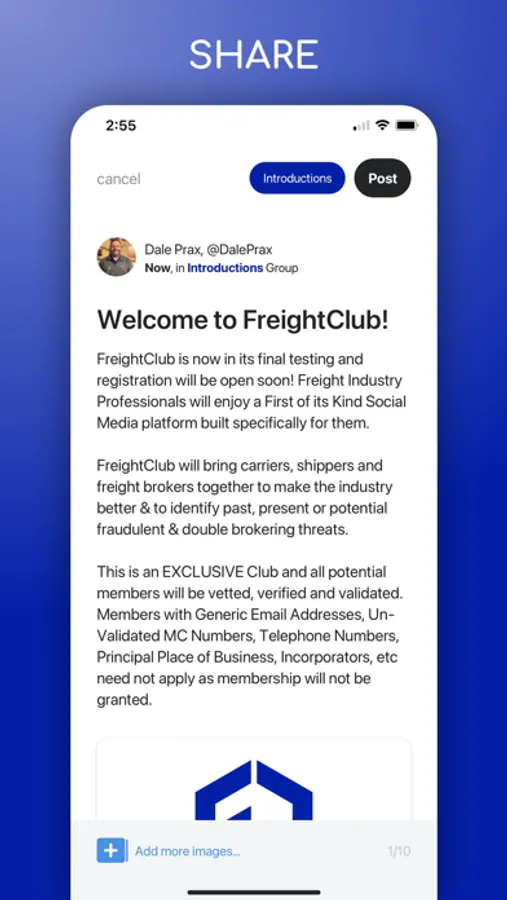 FreightClub is the First of its Kind Social Media platform built specifically for Freight Industry Professionals. The mission is to bring carriers, shippers and freight brokers together to make the industry better & to identify past, present or potential fraudulent & double brokering threats.