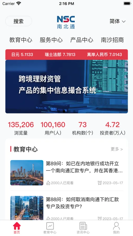 紧密围绕跨境理财和资管领域服务,南北通App提供投资者教育服务和资讯信息服务。