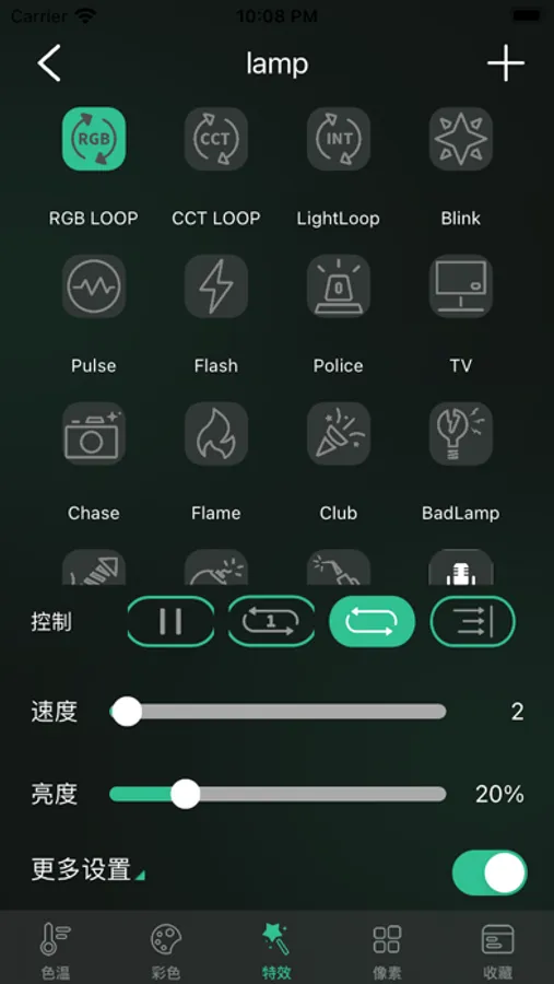 This is a mobile application that controls photography lights through Bluetooth networking. The characteristic of this application is that various lights can be grouped together and combined in an orderly manner to generate various lighting effects. Users can bookmark their favorite lighting combinations and share them with friends. These functions make the lighting layout in the live broadcast room very convenient. Lighting engineers no longer need to set lighting parameters separately for each live broadcast room. Live rooms of the same type only need to have the same camera lights arranged, and then use this application to quickly adjust the lighting parameters.