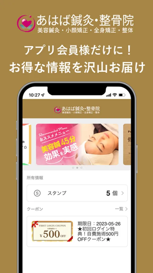 自費施術に使用できるお得なクーポンがアプリを通して発行されご利用いただけます。