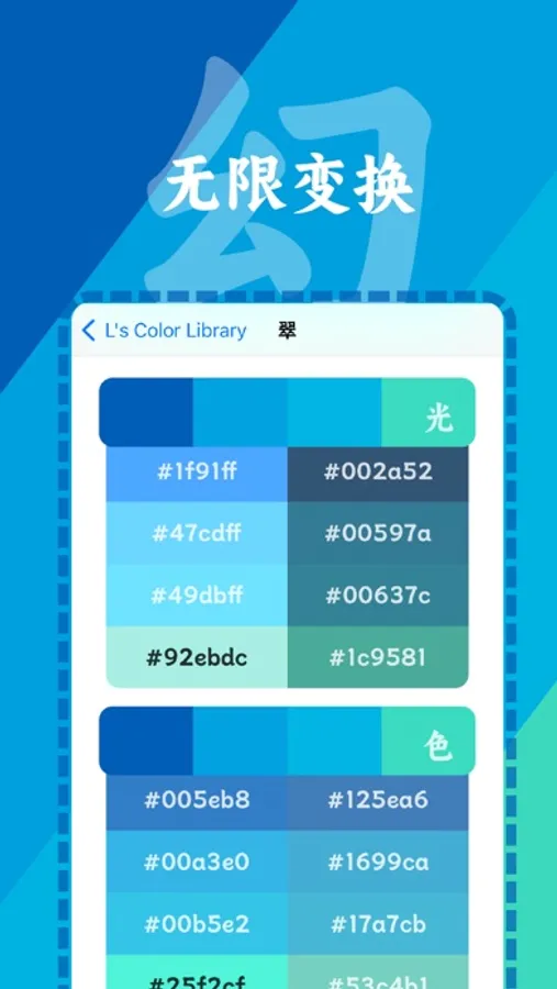 ( ^ . ^ ) > L's Color 自动对色卡中的颜色进行 “增加/减少曝光量”、 “增加/减少饱和度”、“补色 & 反色”的操作,发现更多色彩