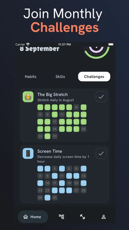 Unlock skill trees and compete in monthly and seasonal challenges with others.