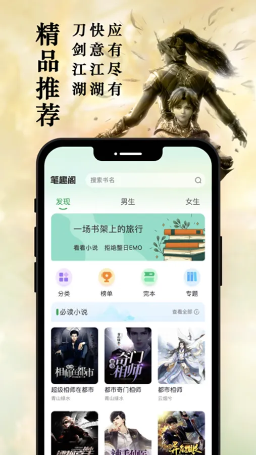 【海量小说】:全类热门随心看,玄幻、奇幻、言情、仙侠、武侠、都市、历史、游戏、科幻、二次元等,分类多样,随心读!