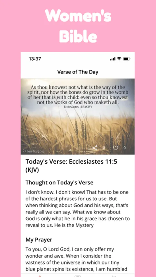 The Women Bible is the perfect way for women to stay connected with God and the Bible. With inspiring daily verses and the easy-to-use search feature, Women Bible can make the Bible a part of your daily life. You can customize your reading experience with font adjustment and highlighting options to make it exactly what you need. And you can share your favorite verses and notes with friends and family on social media to help spread the word.