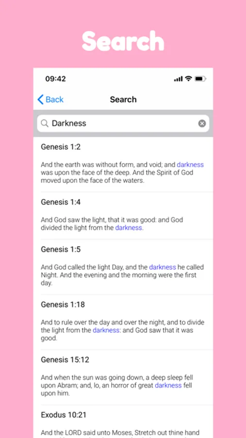 • Easy-to-use search function to find specific verses or passages