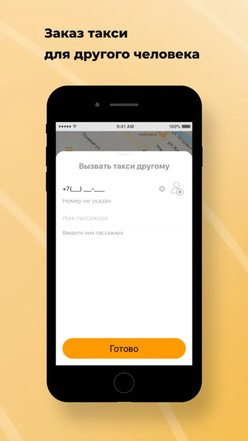 Используйте опцию “Вызвать такси другому” в разделе “Пожелания” и укажите его номер телефона. Когда такси подъедет, на указанный номер придет СМС, а вам — сообщение в приложении.