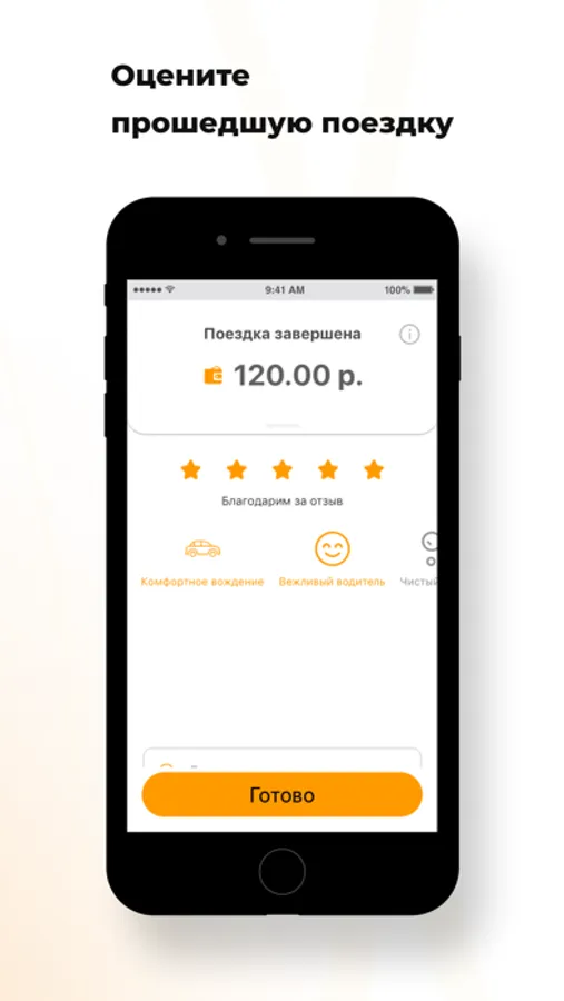 Поставьте оценку водителю, напишите отзыв или выберите реакцию из готовых шаблонов. Прикрепите фотографию к отзыву или посмотрите детализацию платежей после поездки.