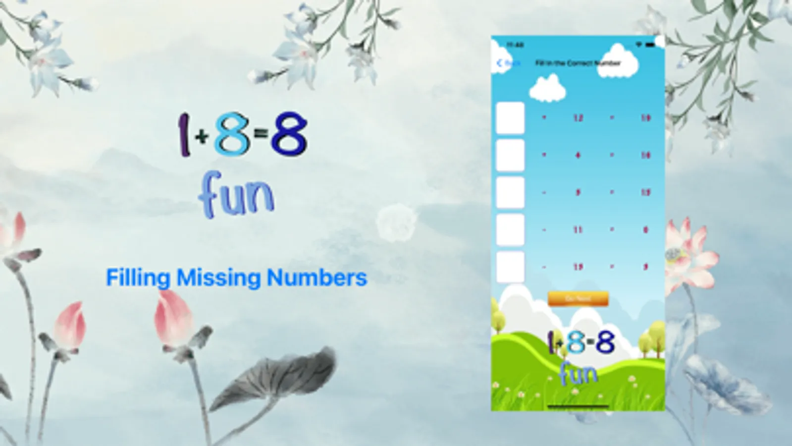 The filling missing number app helps kids better understand math operations and improve their math skills.