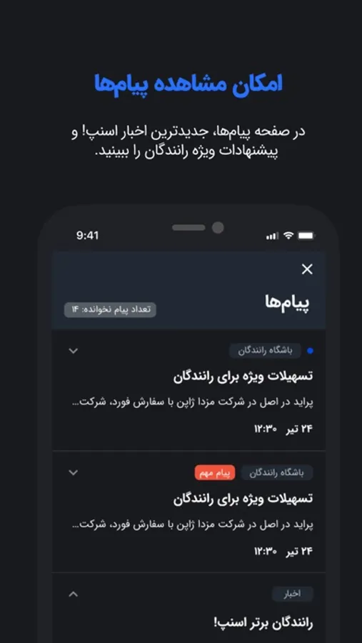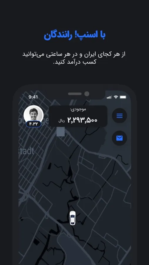 اگر به دنبال کسب درآمد با وسیله نقلیه خود هستید و میخواهید شغلتان ساعت کاری منعطفی داشته باشد و رئیس خودتان باشید همین حالا اپلیکیشن رانندگان اسنپ را دانلود کنید. با اسنپ در هر ساعت از شبانهروز در سراسر ایران میتوانید به کسب درآمد بپردازید.
