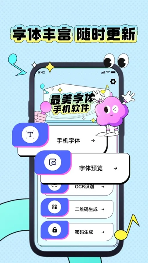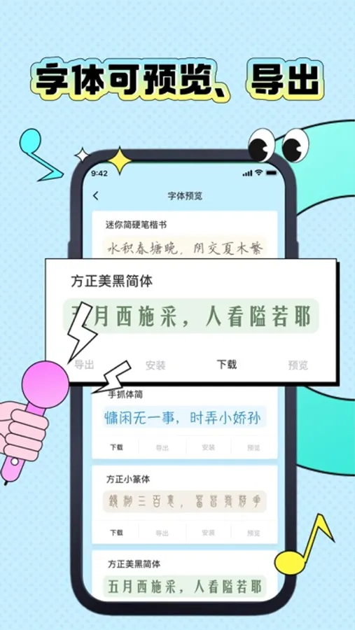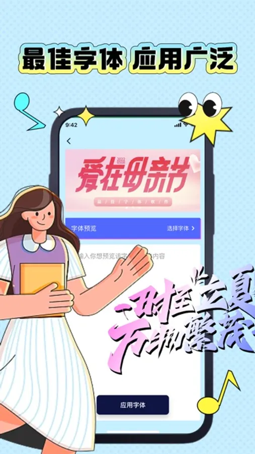 囊括海量字体、无论手机使用或是设计制作,都可以满足!在绢晴字体软件,从常规楷书、行书、草书,到别具一格的话题艺术字,超丰富的字体库适应多场景需求,同时支持预览与下载,操作简便、功能强大。