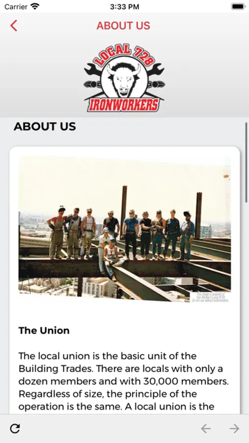 The Ironworkers 728 mobile app is designed to educate, engage and empower our Members. This app is to be used as a tool to better understand the benefits available to our Members working in the Industry. This app is only available to Ironworkers 728 Members.