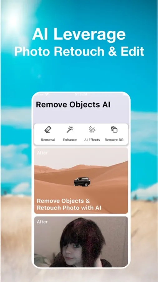 REMOVE PEOPLE & OBJECTS: Use AI Editor to get rid of people and unpleasant items from your images. Have you ever taken a picture that you wanted to remove the background person or the clutter on the table from? With only one tap, AI Editor makes it easy to take out any unwanted elements from your images and improve their professionalism.