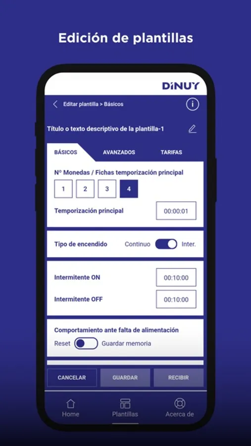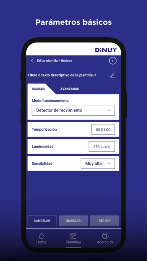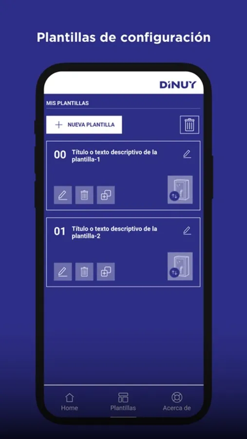 Desde esta App podrás configurar los dispositivos Dinuy. Crear plantillas, crear configuraciones y guardar tus propios ajustes.