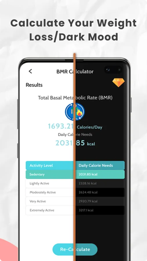 Calculate BMR with the BMR tracker that comes with this Weight Loss app. Here you will get the best figures and accurate results which other apps often fail to produce.