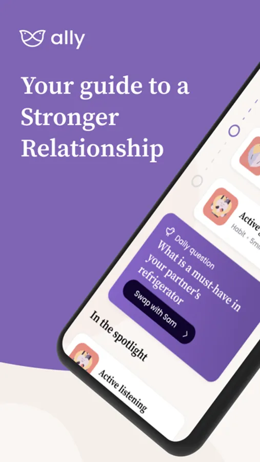 Ally is a fun and easy way to improve your relationship! Learn what your relationship needs right now, and let yourself be guided through exercises that strengthen and deepen your relationship. Invite your partner to share answers with each other.