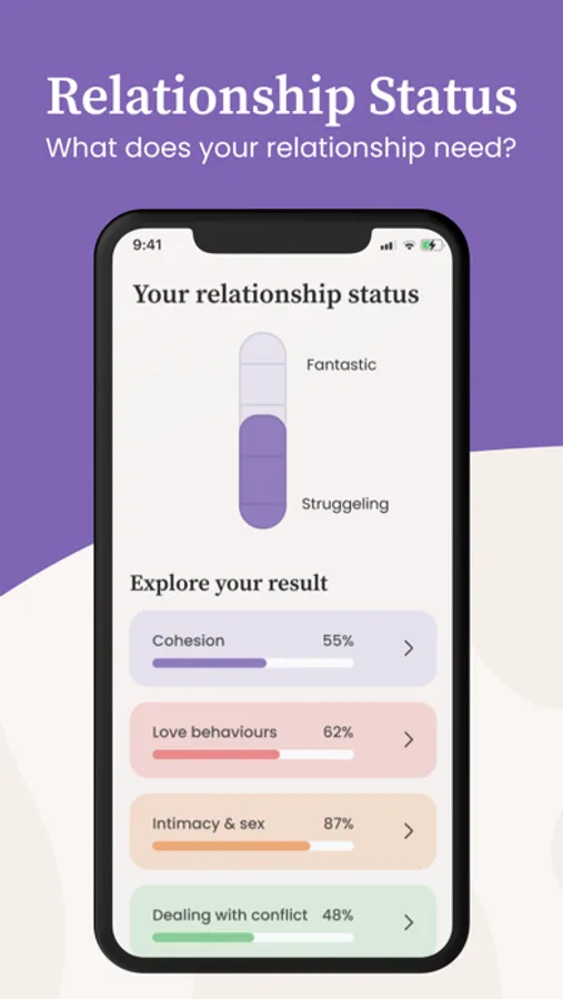 Do the relationship self-assessment to learn how your relationship feels right now. You get a personalized dashboard showing your strengths and challenges as a couple.