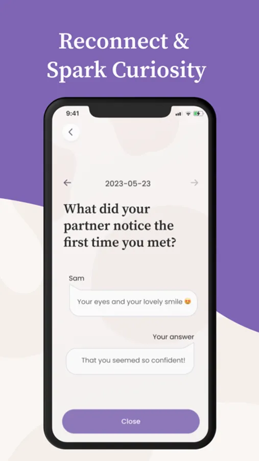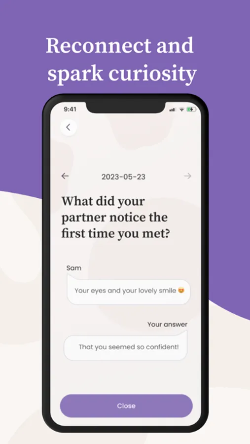 With the daily question, you engage in unexpected and interesting topics. Do you know what your partner is dreaming about right now or which is your partner´s go-to karaoke song? You swap answers directly in the app.