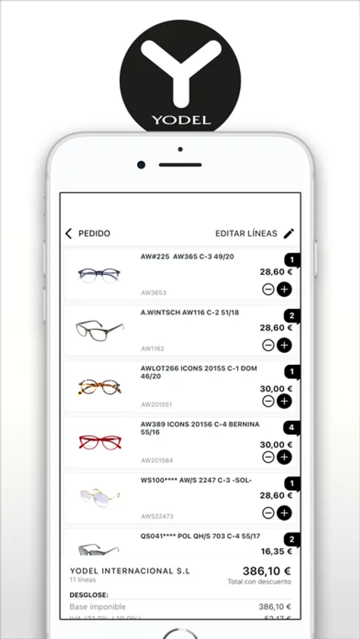 - With the App you can place your orders for frames, in a comfortable and fast way.