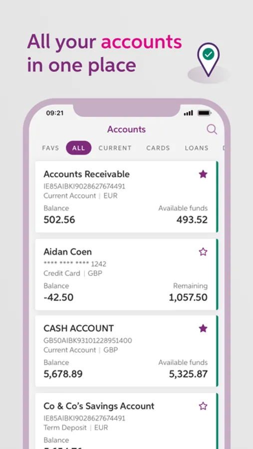 • Mark payees as favourites, who can then be paid from your Home Screen
