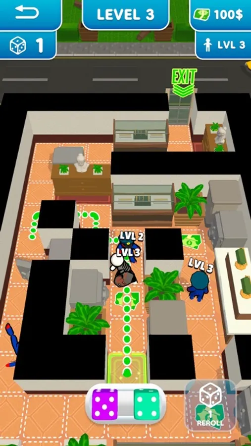 Robbery is a game of chance, so roll for your lucky move and outsmart the guards.