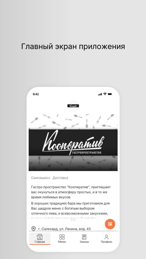 Приложение для заказа еды из ресторана гастропространства «Кооператив» г.Салехард.
