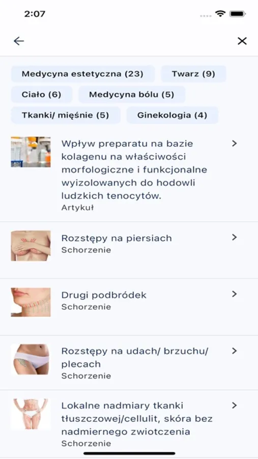 4. Publikacje medyczne - aplikacja zapewnia dostęp do stale aktualizowanej bogatej bazy publikacji medycznych na temat zastosowania terapii kolagenowej w wielu dziedzinach medycyny. Możesz być na bieżąco z najnowszymi doniesieniami medycznymi z kraju i z zagranicy, przeglądać wyniki badań i czerpać z nich korzyści w codziennej praktyce.