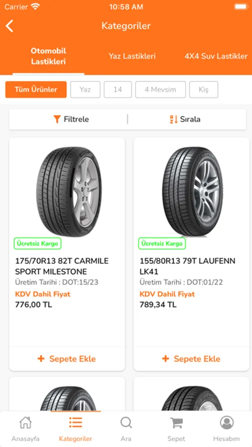 * Ürün kategorilerinde filtreleme yapabilirsiniz