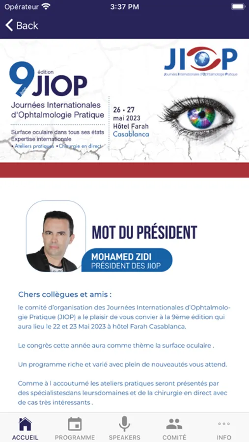 le comité d'organisation des Journées Internationales d'Ophtalmologie Pratique (JIOP) a le plaisir de vous convier à la 9ème édition qui aura lieu le 22 et 23 Mai 2023 à hôtel Farah Casablanca.